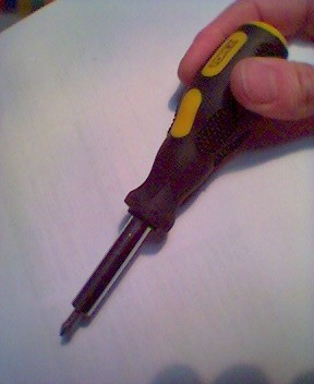 6. Тепер треба відкрутити чотири довгі шурупи, які скріплюють металеве та пластикове дечко корпусу. Тут я вирішив відступитися від східних традицій і задіяв окремо придбану якісну хрестову вкладку до викрутки.