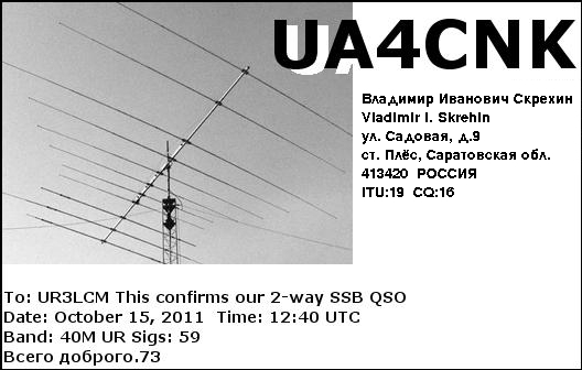 Серед відалених кореспондентів тут були: SP4OPQ 59/55 Jan Siemiatyce, UA4CNK 59+/57 Владімір NR Саратов, RK6UWA/P 59/59 Александр Астрахань, RK4PL 59+/56 Юрій Нижнекамск (Березовая Ґрива).
