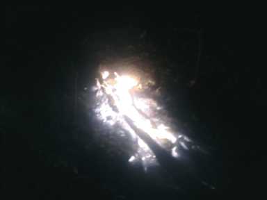 Поки я працював у етері, Валерій та Євген розвели неподалік позиції вогнище. Сонце вже скотилося за обрій. Щоб освітити робоче місце, хлопці встановили на гілку дерева ще й світлодіодний ліхтар. Робота нашої станції продовжувалася без перерви.